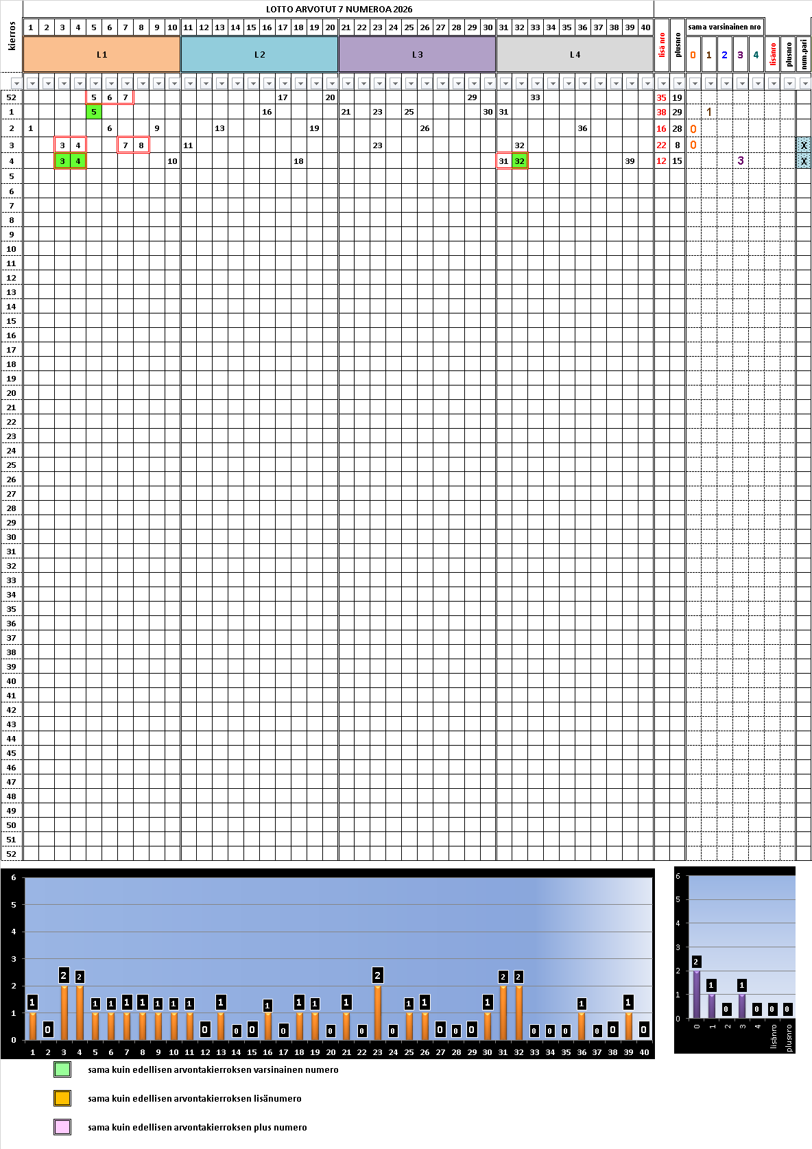 3. Verrattaessa arvottuja numeroita edellisen kierroksen arvottuihin numeroihin, arvotuissa numeroissa ei esiinny samoja numeroita.