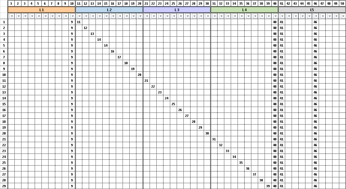 Rivikokonaisuus koostuu yhdeksästä 165 lottorivin jaksosta. Osien eroavaisuutena on ainoastaan numerovälin 31 - 40 muuttuva seitsemäs numero.