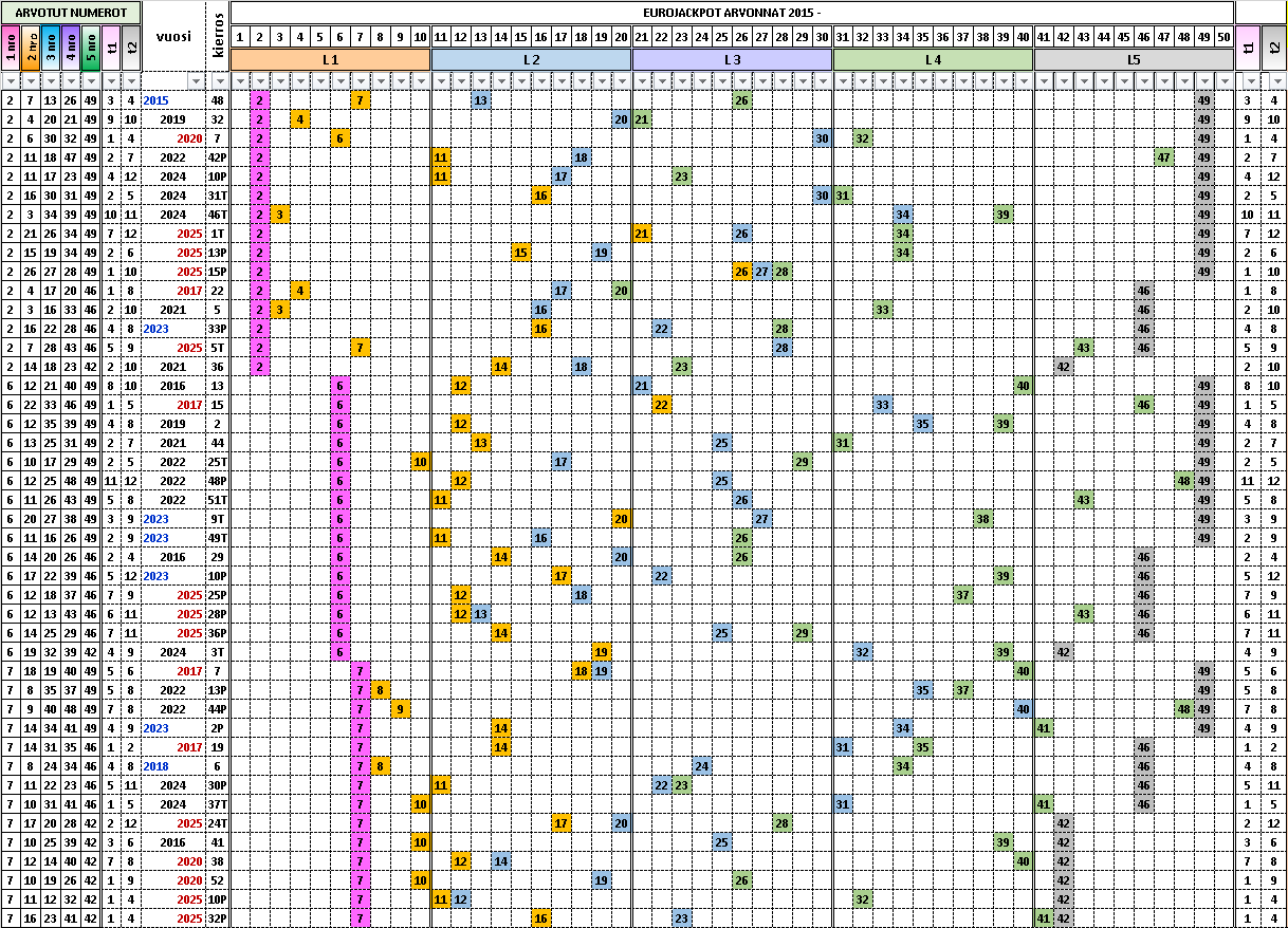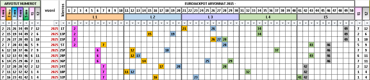 Tarkastellaan mitä taulukko kertoo vuoden 2015 – 2025 arvonnoista.