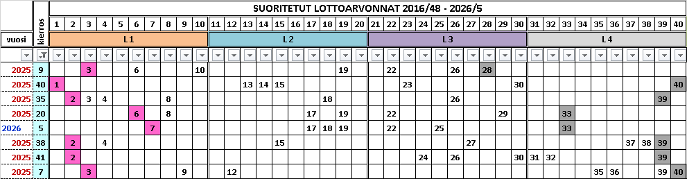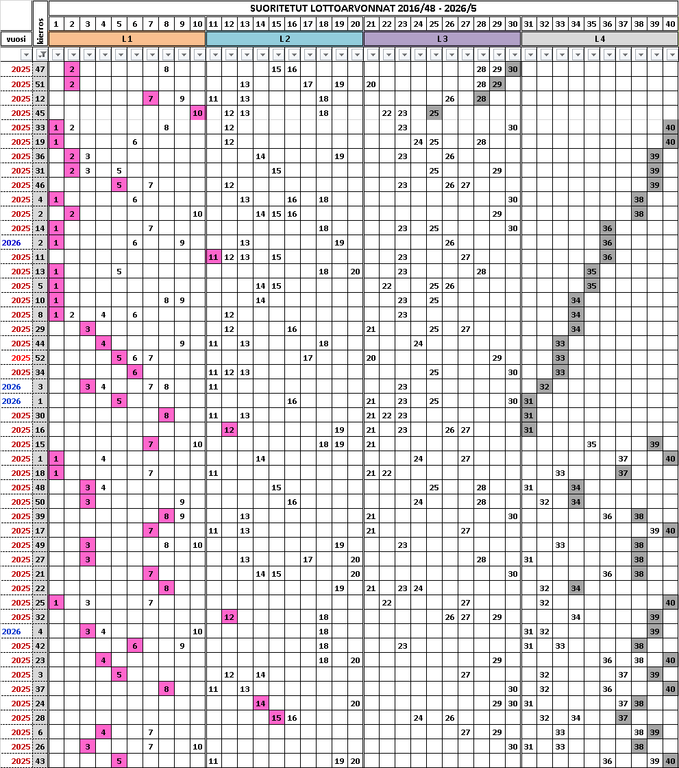 Lottoarvontojen taulukointi kertoo vain menneisyyden, ei välttämättä tulevaisuutta. Lottomies vatuloi mystisistä lottoriveistä.