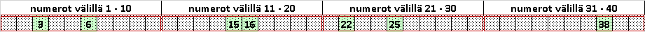 Taulukkoon on tummanpunaisella neliöity kohdat joista numerot valikoituvat.