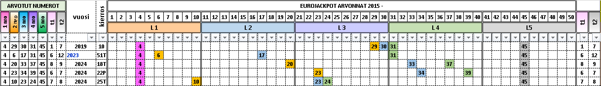 Otetaan esimerkki: Valitaan pienimmäksi pelattavaksi päänumeroksi numero 4 ja suurimmaksi numero 45. Vuosina 2015 – 2025 arvontatuloksia on ollut viisi, joista kolme vuonna 2024. Yhteensä 736 arvonnassa tätä ei ole ollut. Ja kuitenkin sillä on pelattu ja peliyhtiöt ovat sitä riviä tarjonneet pelattavaksi!